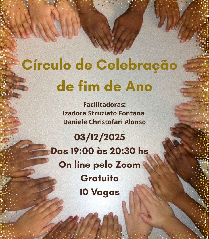 Círculo de Construção de Paz de Celebração de fim de ano (prática circular da Justiça Restaurativa) Uma roda de conversa acolhedora e divertida para celebrar o fim de ano! Gratuito e com vagas limitadas 📅 Data: 03/12/2025🕖 Horário: das 19h às 20h30💻 On line pelo...