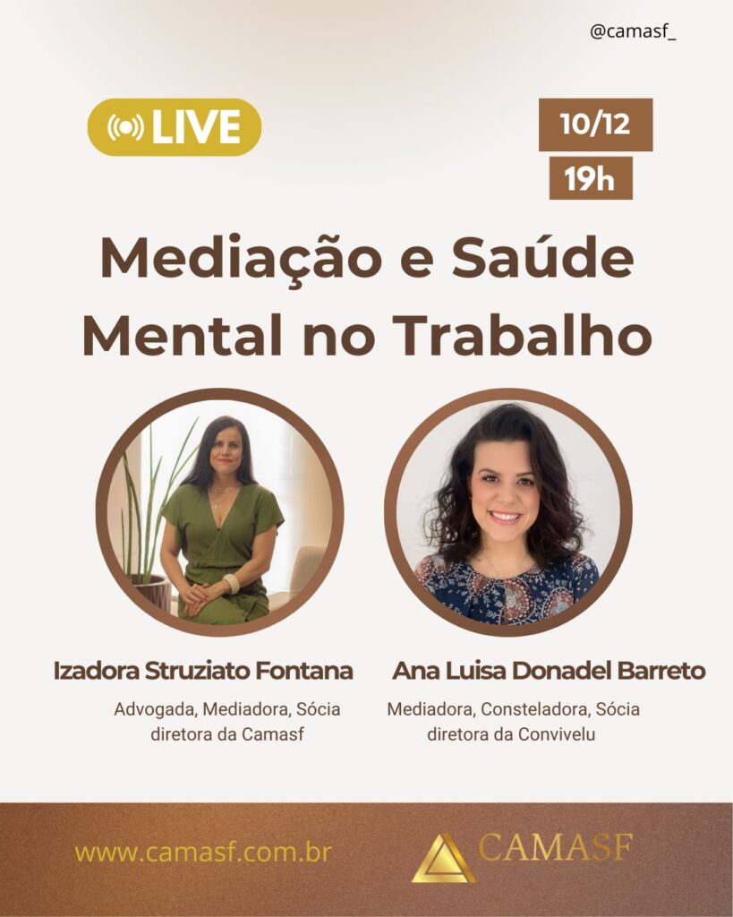 A live será no dia 04 de maio de 2022 as 19:00 no instagram oficial da CAMASF. Participação de Izadora Struziado Fontana (Advogada, Mediadora e Sócia proprietária da CAMASF) e Daniele Christofari Alonso (Advogada, Mediadora e Sócia proprietária do IPMEC) Clique...